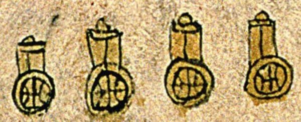 Códice: 390 Lámina: 390_1 Zona: 390_1_G Compuesto glífico: 390_1_G_15 Glífos: 2