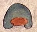 Es un cerro, de color verde, con la cima redondeada, la parte de abajo está en color rojo señalando la entrada al inframundo. |